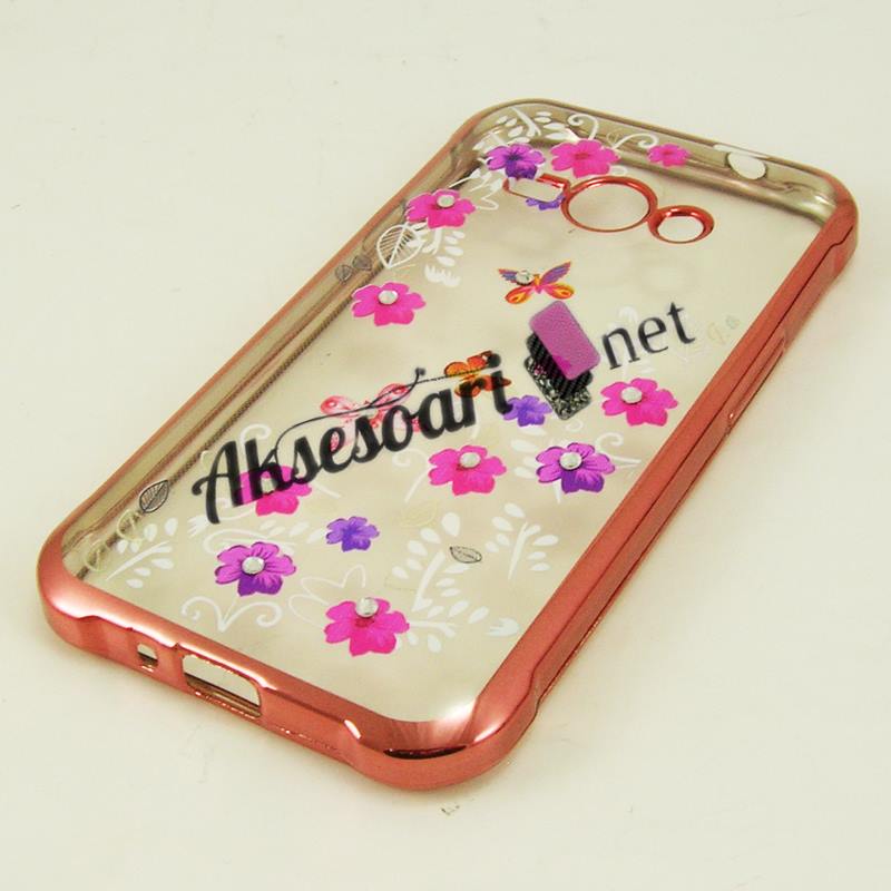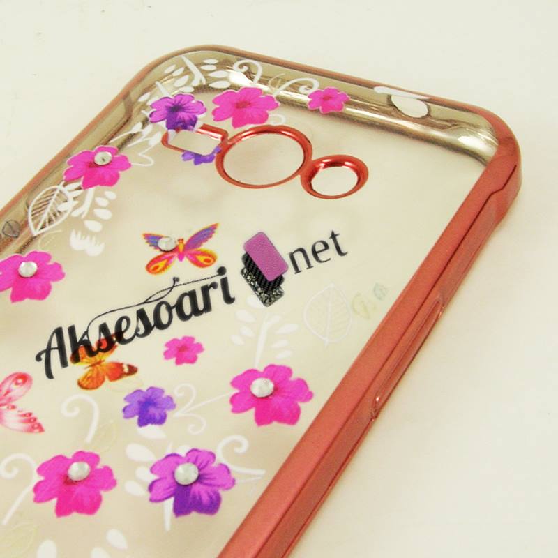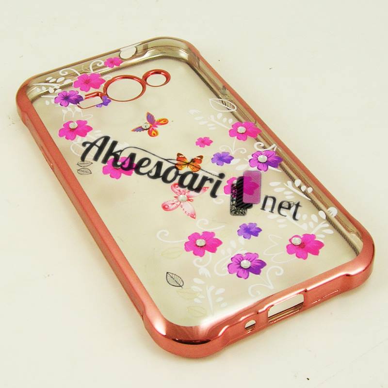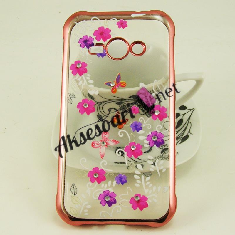 Луксозен силиконов калъф / гръб / TPU с камъни за Samsung Galaxy J1 Ace - цветя / меден кант