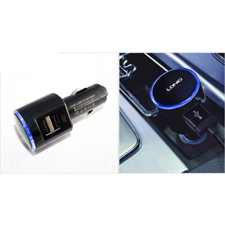 Зарядно за кола LDNIO / DC 12V - 24V / с два USB порта DC 5V / 2.1A + Apple iPhone / iPod USB кабел - черно SPECIFICATIONS Model - DL-DC216 2.1 A USB Input - DC 12-24 V