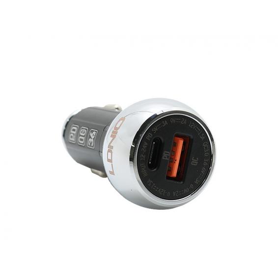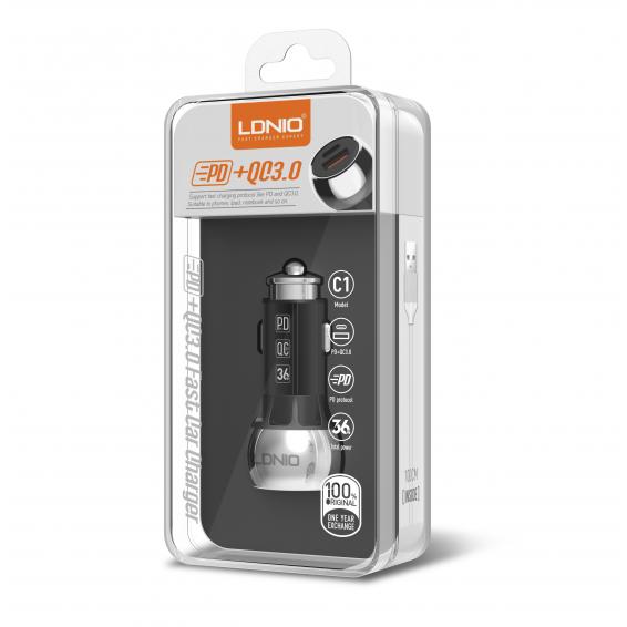 Зарядно за кола LDNIO C1 12V-24V PD+QC 3.0 с 2 USB порта / Qualcomm Quick Charge 3.0 Type-C към Type-C - черно