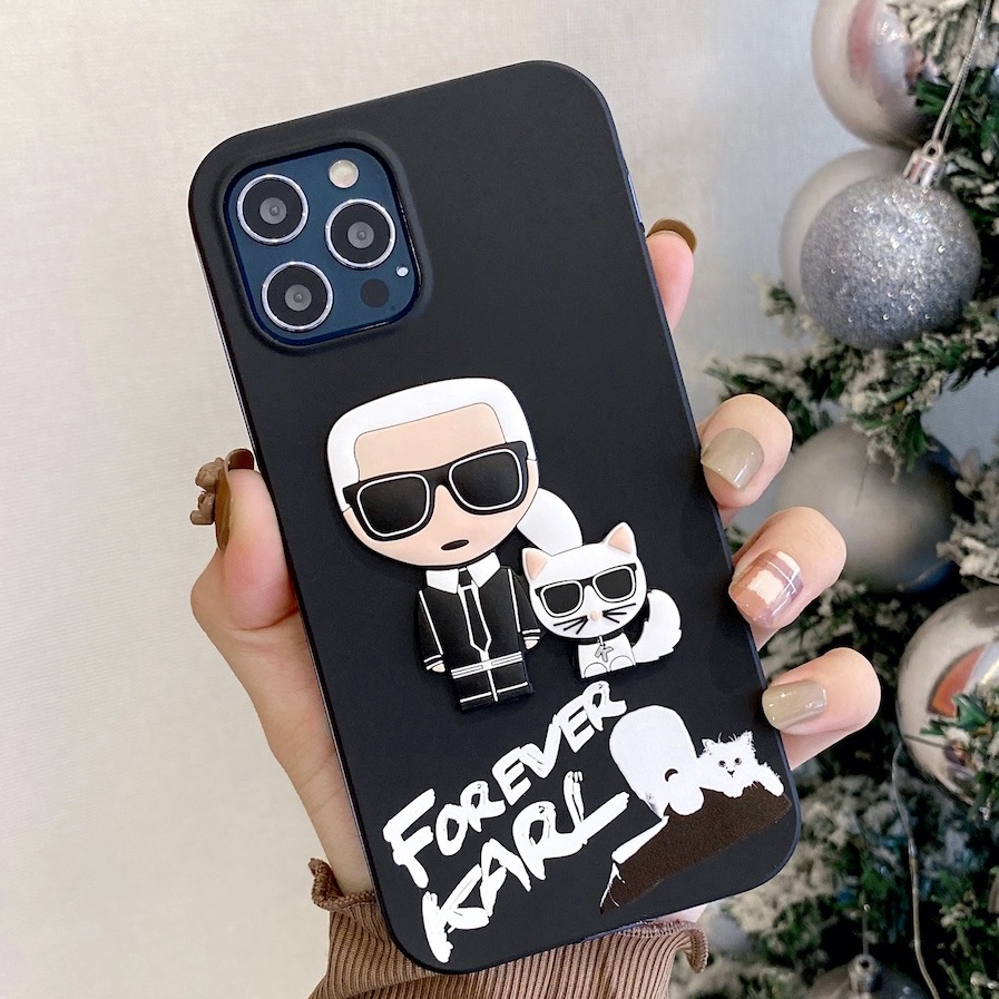 Луксозен гръб Karl Lagerfeld за Apple iPhone 12 / 12 Pro 6.1'' - Karl Forever & Cat / черен / тъмно синя рамка