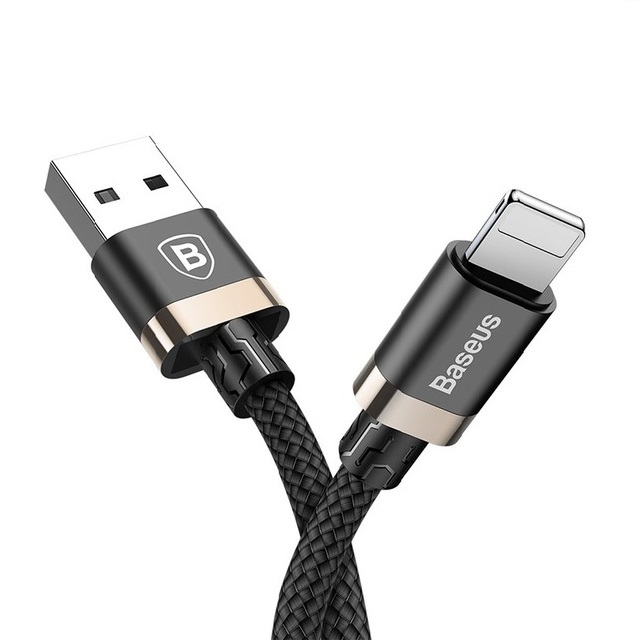 Оригинален USB кабел BASEUS Golden Belt 2A за зареждане и пренос на данни 2в1 1,5m за Apple iPhone 7 / iPhone 8 / iPhone X - черен със златисто