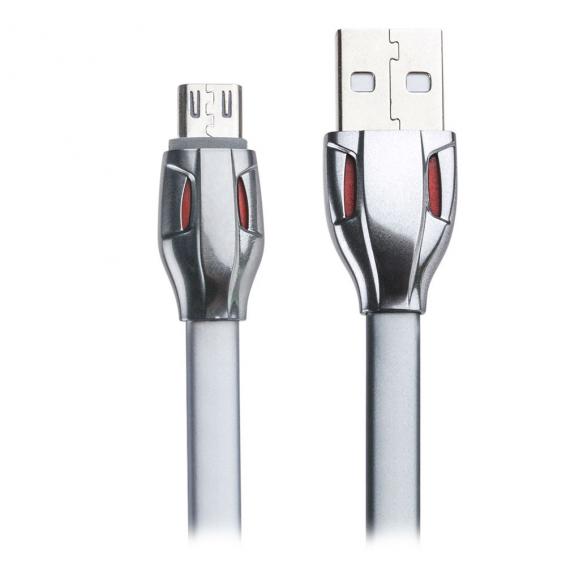 Оригинален USB кабел REMAX Laser Series RC-035i 1m / USB Charging Data Cable за Apple iPhone 5 / iPhone 5S / iPhone SE / iPhone 6 / iPhone 6 Plus / iPhone 7 / iPhone 7 Plus - сребрист / плосък