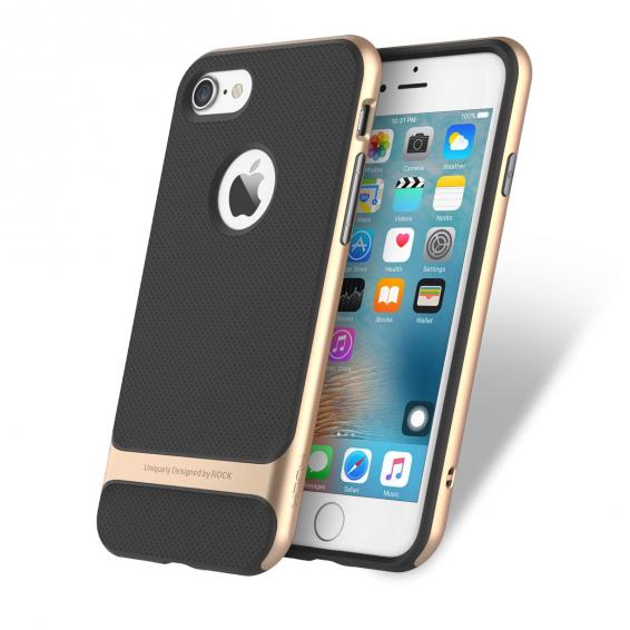Луксозен калъф ROCK CASE за Apple iPhone 7 - черен със златист кант