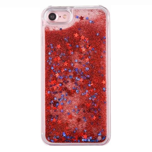 Луксозен твърд гръб 3D за Apple iPhone 7 / iPhone 8 - прозрачен / червен брокат / звездички