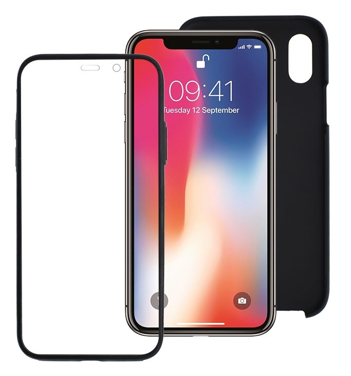 Предна част - PET протектор с черна рамка, в комбинация от вътрешна силиконова рамка, покриваща и бутоните.