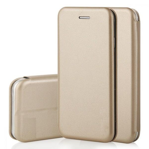 Луксозен кожен калъф Flip тефтер със стойка OPEN за Apple iPhone 7 Plus / iPhone 8 Plus - златист