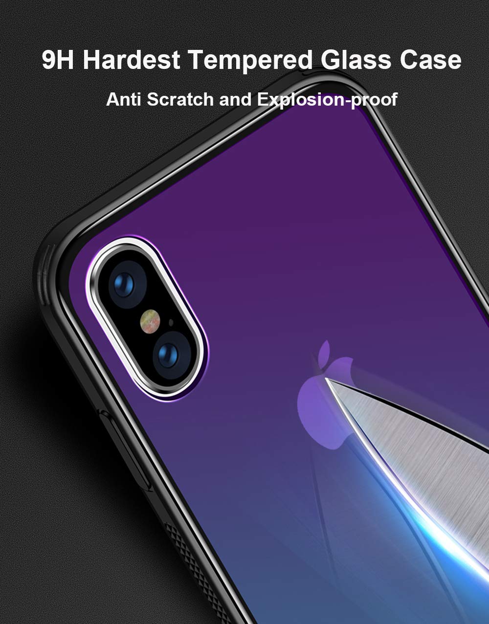 Стъклен скрийн протектор / Back Tempered Glass Protection Screen за Apple iPhone X / iPhone XS - заден / преливащ / лилаво и розово