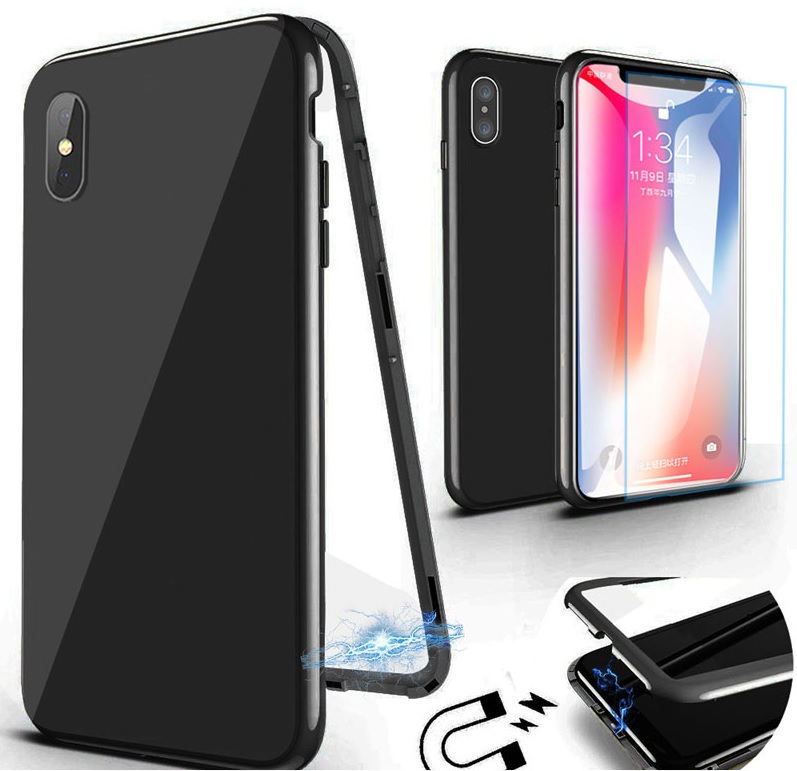 Магнитен калъф Bumper Case 360° FULL със стъклен протектор за Apple iPhone X / iPhone XS - черен