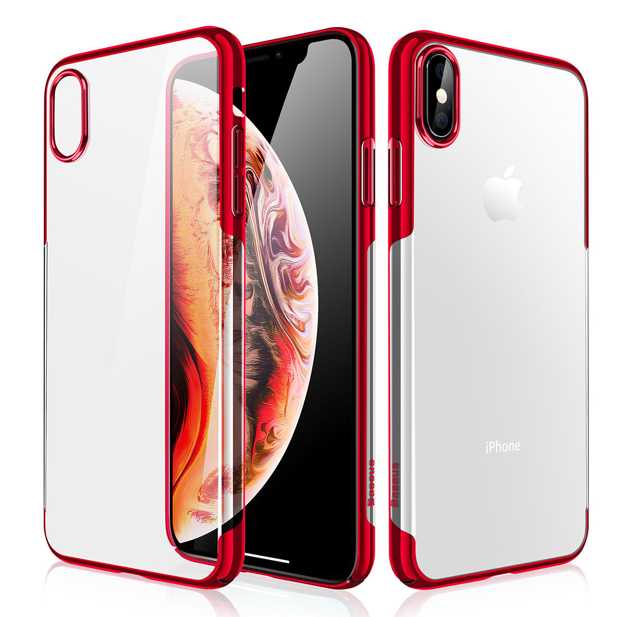 Луксозен твърд гръб Baseus Glitter Clear Case за Apple iPhone XS Max - прозрачен / червен кант
