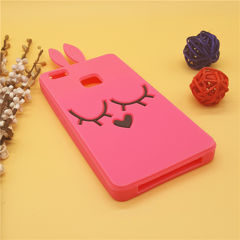 Силиконов калъф / гръб / TPU 3D за Huawei P9 Lite - розов / Face / заешки ушички