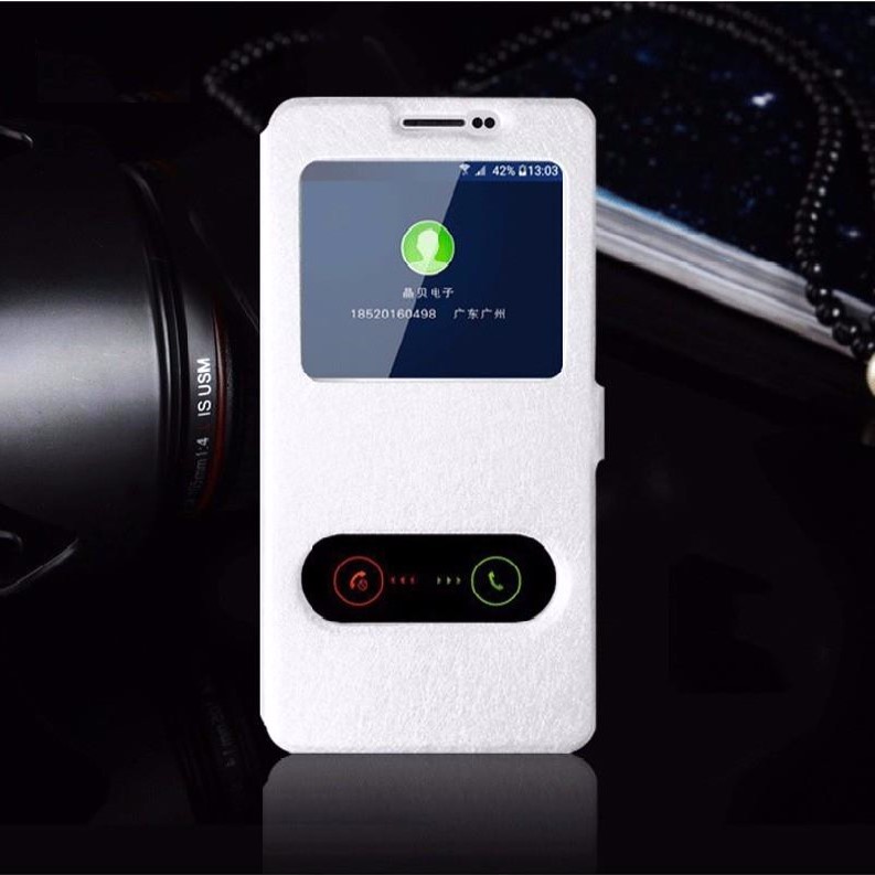 Кожен калъф Flip тефтер S-View със стойка за Huawei Y5 II / Y5 2 / Y6 II Compact - бял