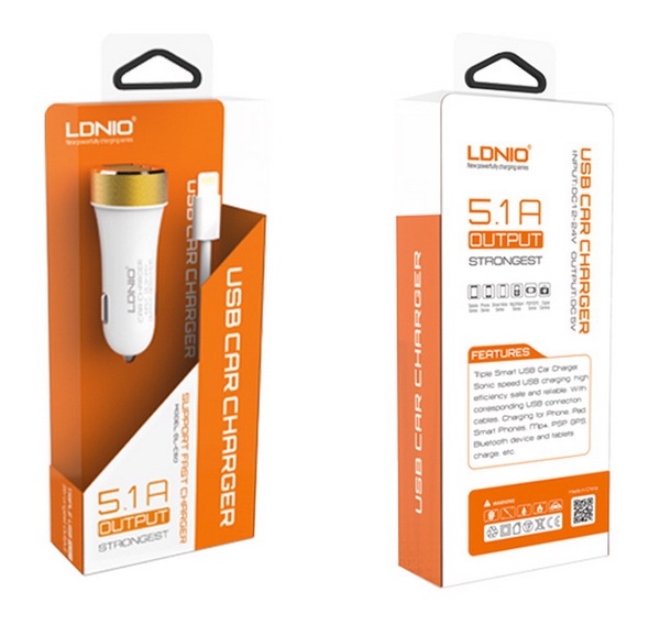 Зарядно за кола Triple Smart Car carger LDNIO / DC 12V-24V / с USB порт и Micro USB кабел DC 5V / 5.1A / DL-C50