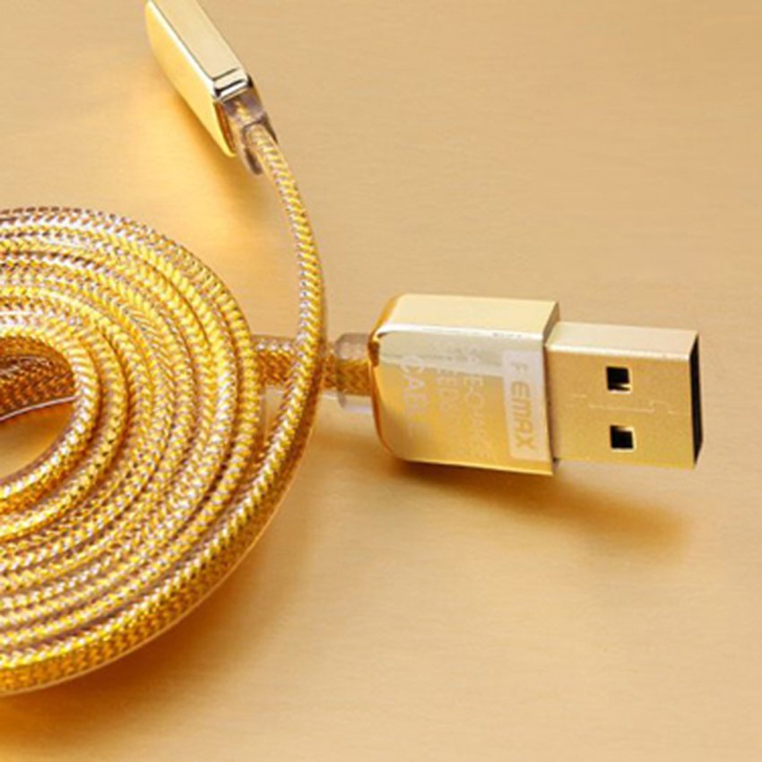 USB кабел REMAX за Apple iPhone 5 / iPhone 5S / iPhone 6 / iPhone 6 plus / iPod Touch 5 / iPhone 5C / iPod Nano 7 - златист / GOLD
