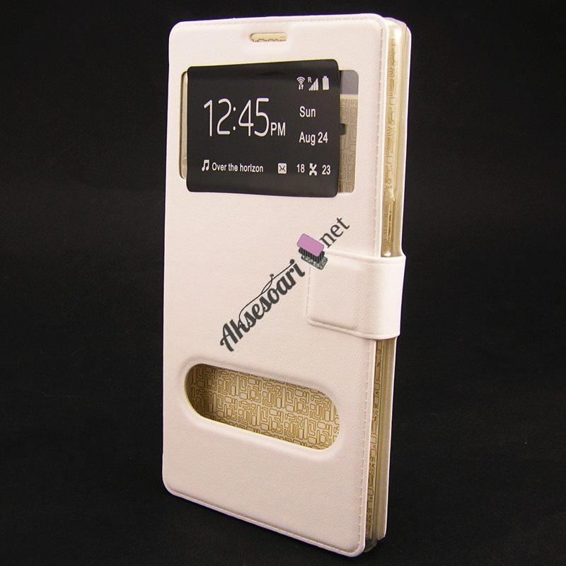 Кожен калъф Flip тефтер S-view със стойка за Huawei Ascend P8 Lite / Huawei P8 Lite - бял / flexi