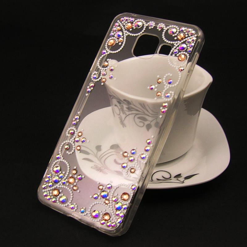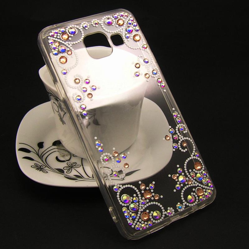 Луксозен силиконов калъф / гръб / TPU с камъни за Samsung Galaxy A3 2016 A310 - прозрачен / многоцветен / бели точки