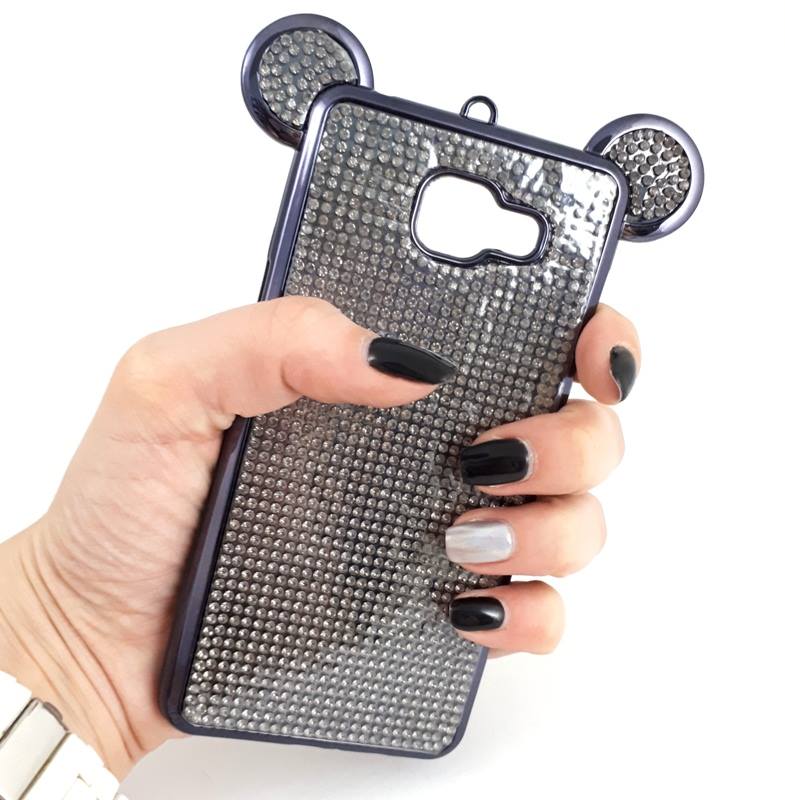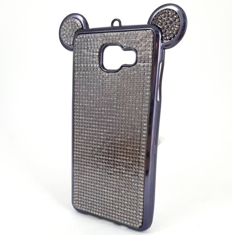 Луксозен силиконов калъф / гръб / TPU 3D с камъни за Samsung Galaxy A3 2016 A310 - тъмно сив / миши ушички