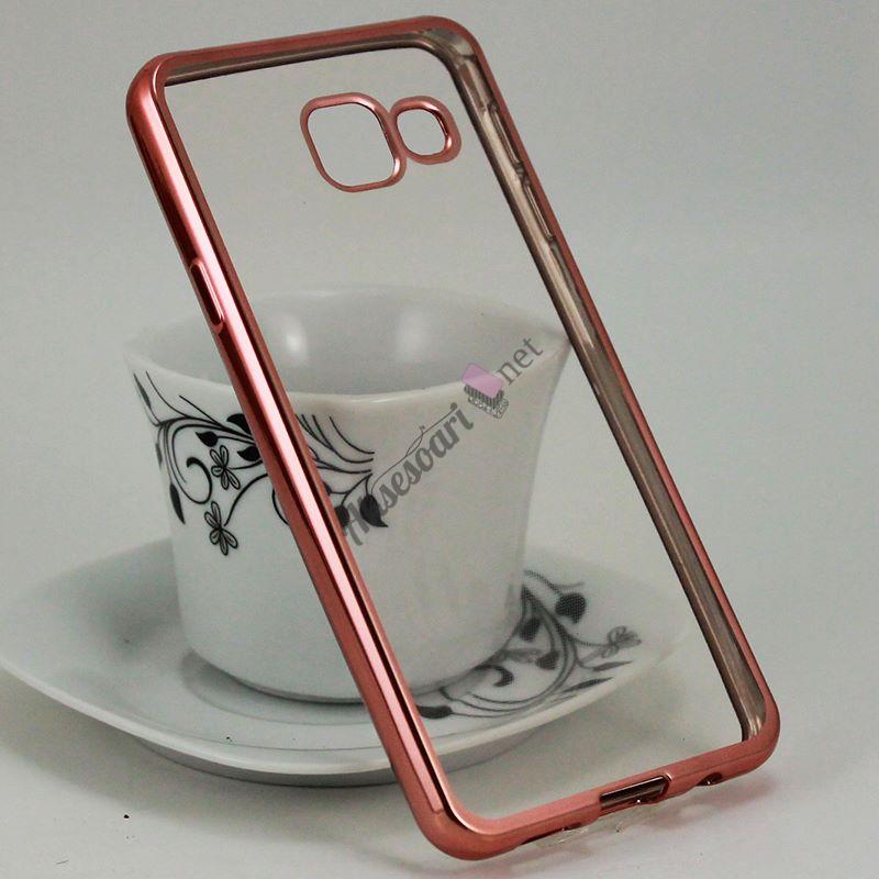 Луксозен твърд гръб за Samsung Galaxy A3 2016 A310 - прозрачен / Rose Gold кант