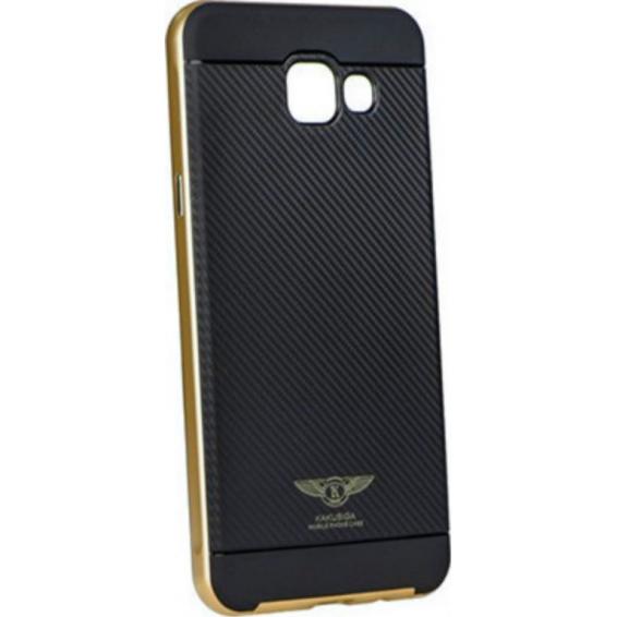 Луксозен твърд гръб за Samsung Galaxy A5 2016 A510 - черен / златист кант / Carbon