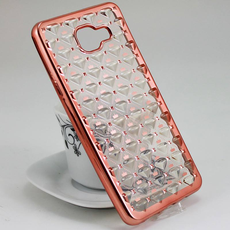 Силиконов калъф / гръб / TPU 3D за Samsung Galaxy A5 2016 A510 - прозрачен / звездички и коронки / Rose Gold кант