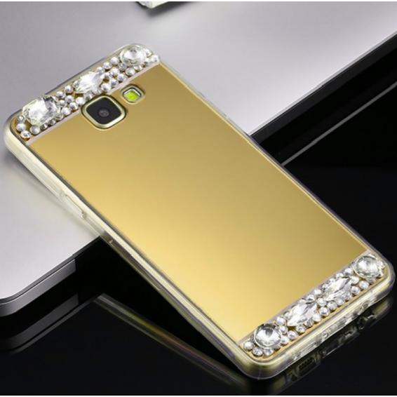 Луксозен силиконов калъф / гръб / TPU с камъни за Samsung Galaxy A7 2016 A710 - огледален / златист