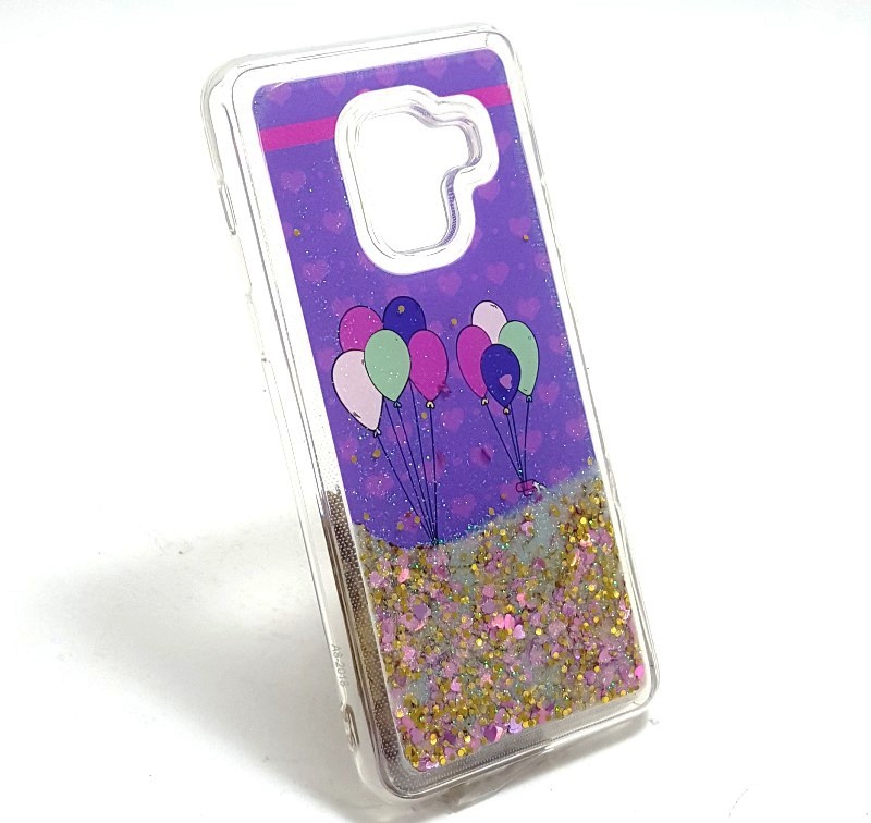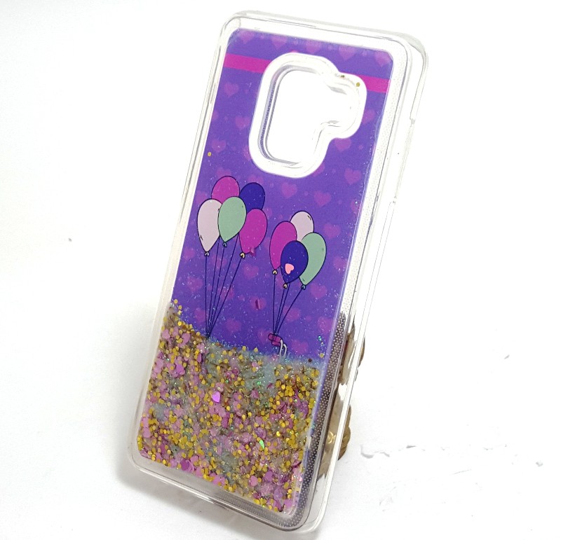 Луксозен твърд гръб 3D за Samsung Galaxy A8 2018 A530F - Bicycle with Balloons / бял брокат с лилави сърца