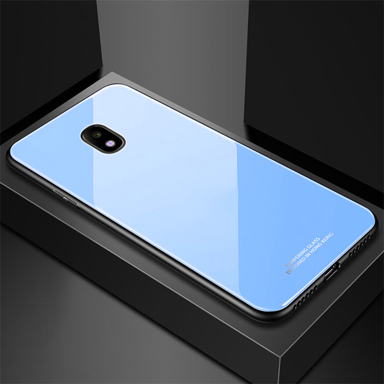 Луксозен стъклен твърд гръб за Samsung Galaxy J3 2017 J330 - син