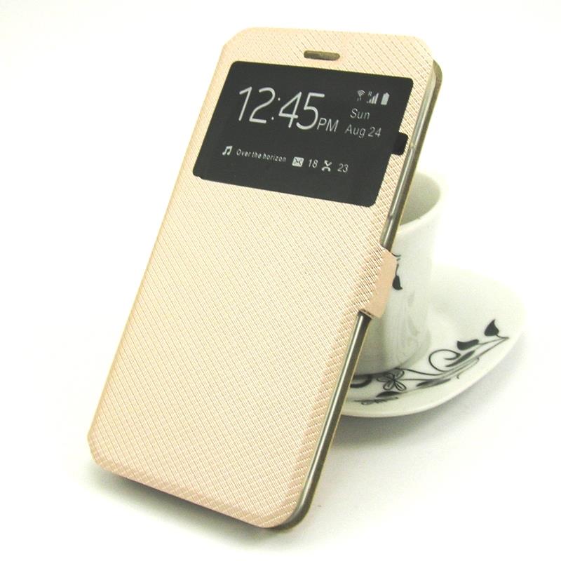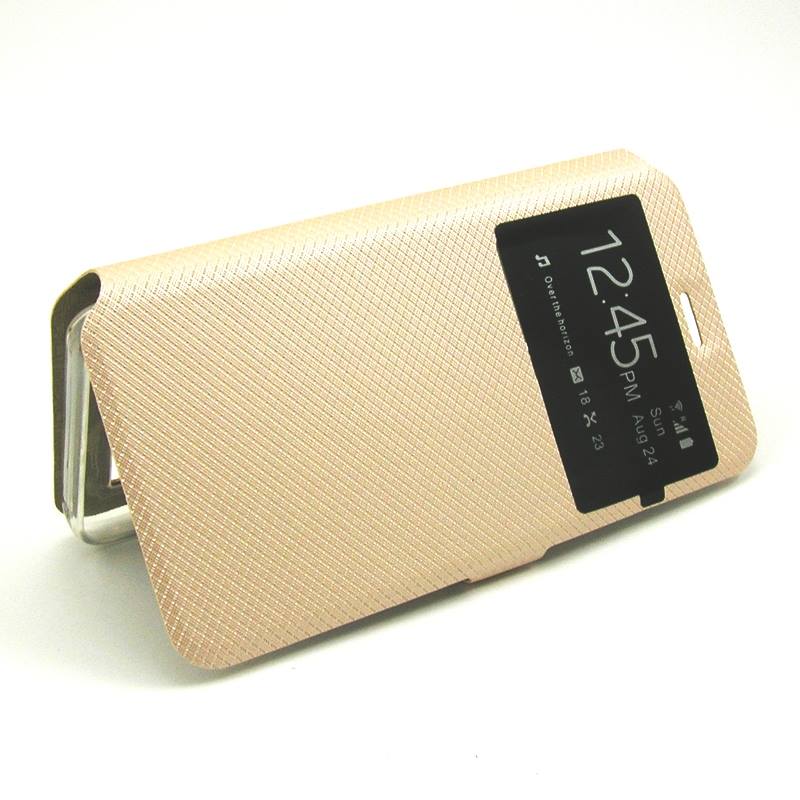 Кожен калъф Flip тефтер S-View със стойка за Samsung Galaxy J5 J500 - златист / ромбове / Flexi
