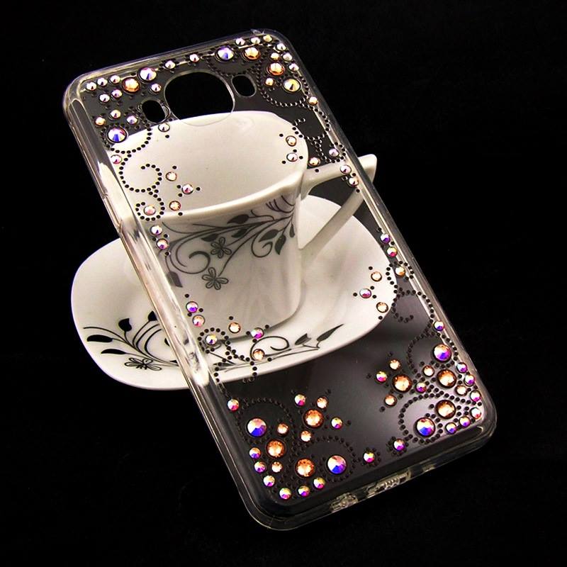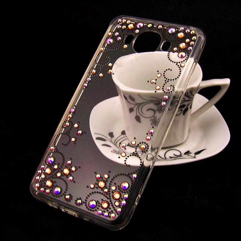Луксозен силиконов калъф / гръб / TPU с камъни за Samsung Galaxy J7 2016 J710 - прозрачен / орнаменти с цветни камъни