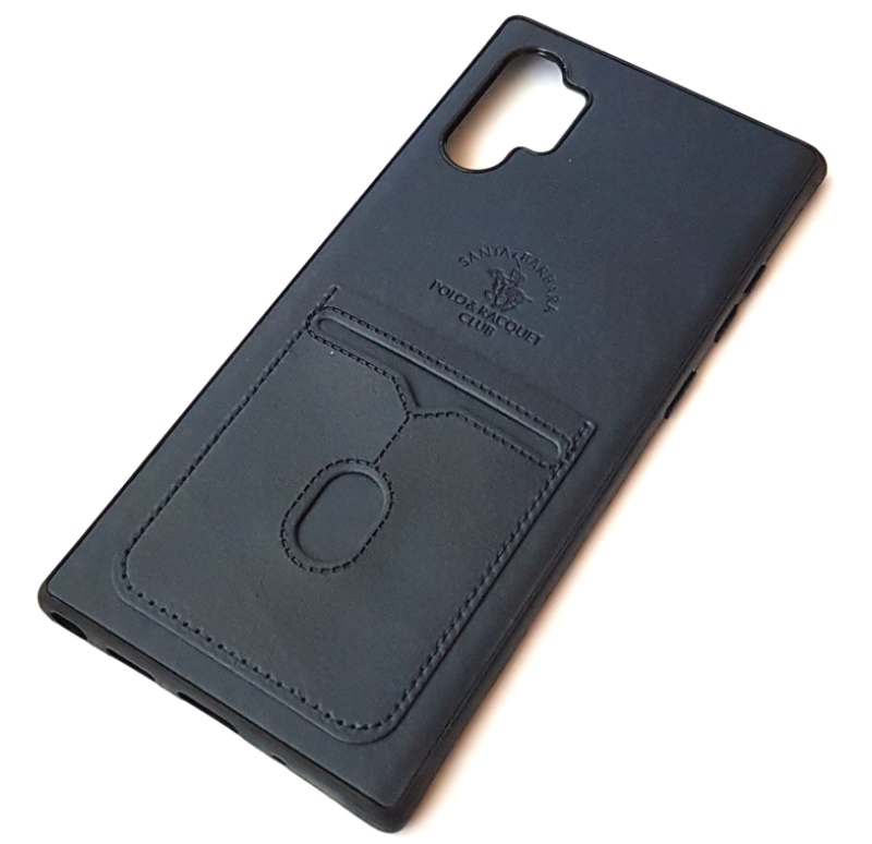 Луксозен кожен гръб Santa Barbara Polo & Racquet Club за Samsung Galaxy Note 10 Plus N975 - тъмно син / слот за карти