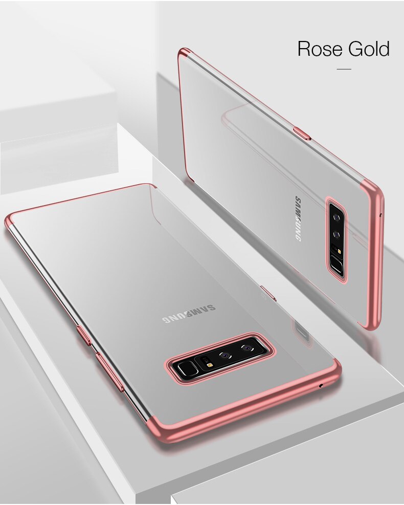 Луксозен силиконов калъф / гръб / TPU за Samsung Galaxy Note 8 N950 - прозрачен / Rose Gold кант