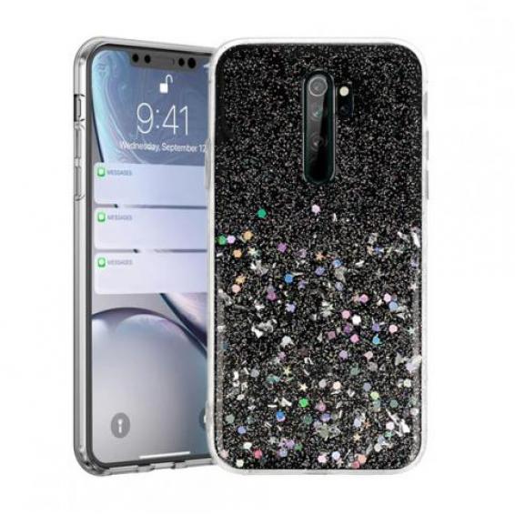 Силиконов калъф / гръб / TPU Brillant Clear Case за Xiaomi Redmi 9A - черен / сребрист брокат