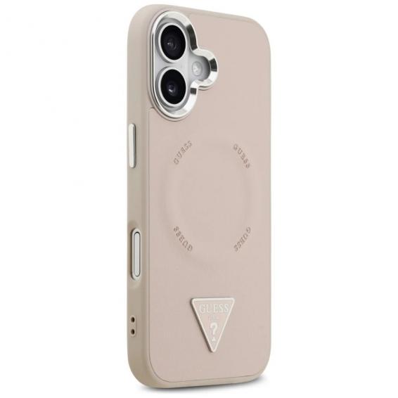 Оригинален калъф / гръб / GUESS Leather Triangle Metal Logo кейс с безжично зареждане MagSafe за Apple iPhone 17 (6.3) - розов