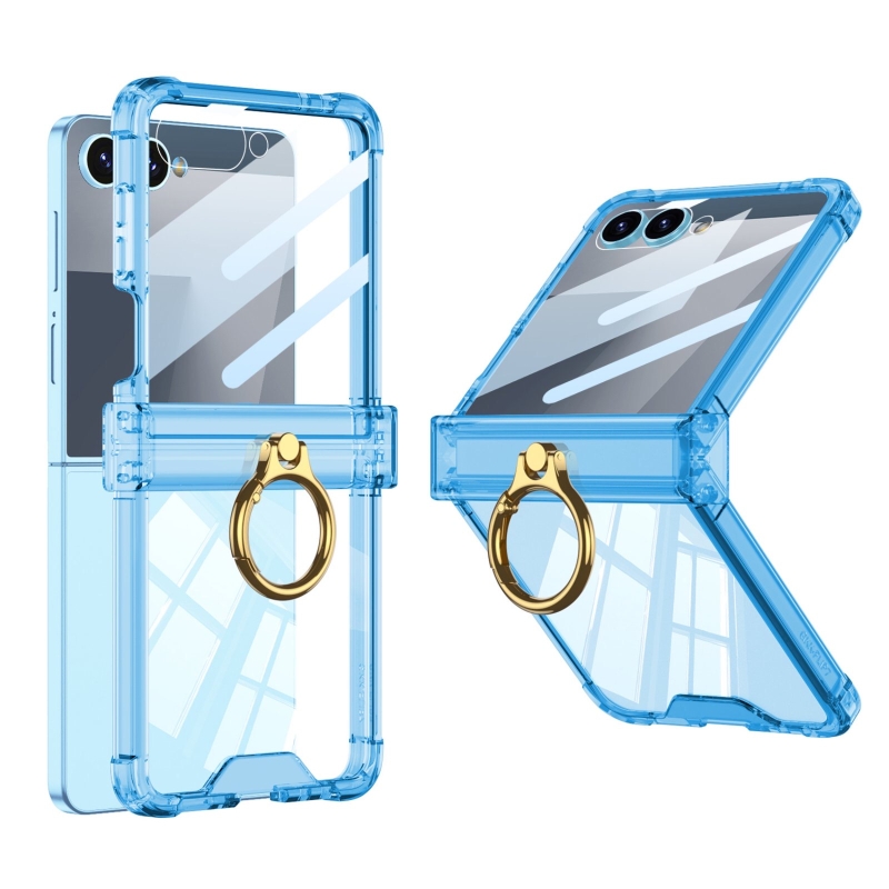 Луксозен удароустойчив калъф / гръб / Ring Case за Samsung Galaxy Z Flip 7 - син / прозрачен