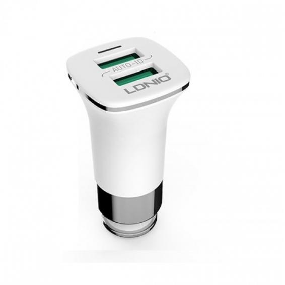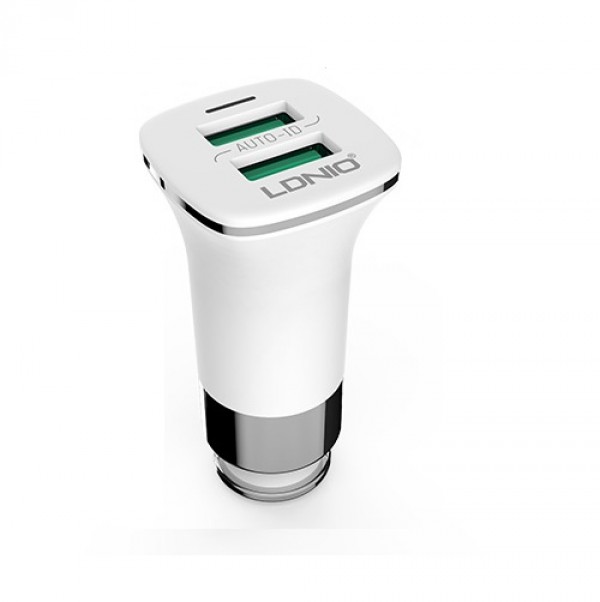 Зарядно за кола LDNIO C301 / DC 12V -24V / с 2 USB порта 5V / 3.6A за Samsung , Sony , HTC , Nokia , LG , Huawei, ZTE, Lenovo и др - бяло и сребристо