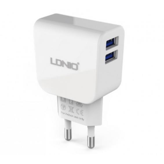 Универсално зарядно устройство LDNIO DL-AC56 220V с два USB порта 5V / 2.1A за Samsung , Apple , LG, HTC, Sony, Nokia, Huawei, ZTE, BlackBerry и др. - бяло