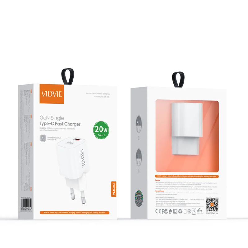 Универсално зарядно устройство / адаптер / VIDVIE PLE253 220V 60W / Type-C to Lightning - бяло