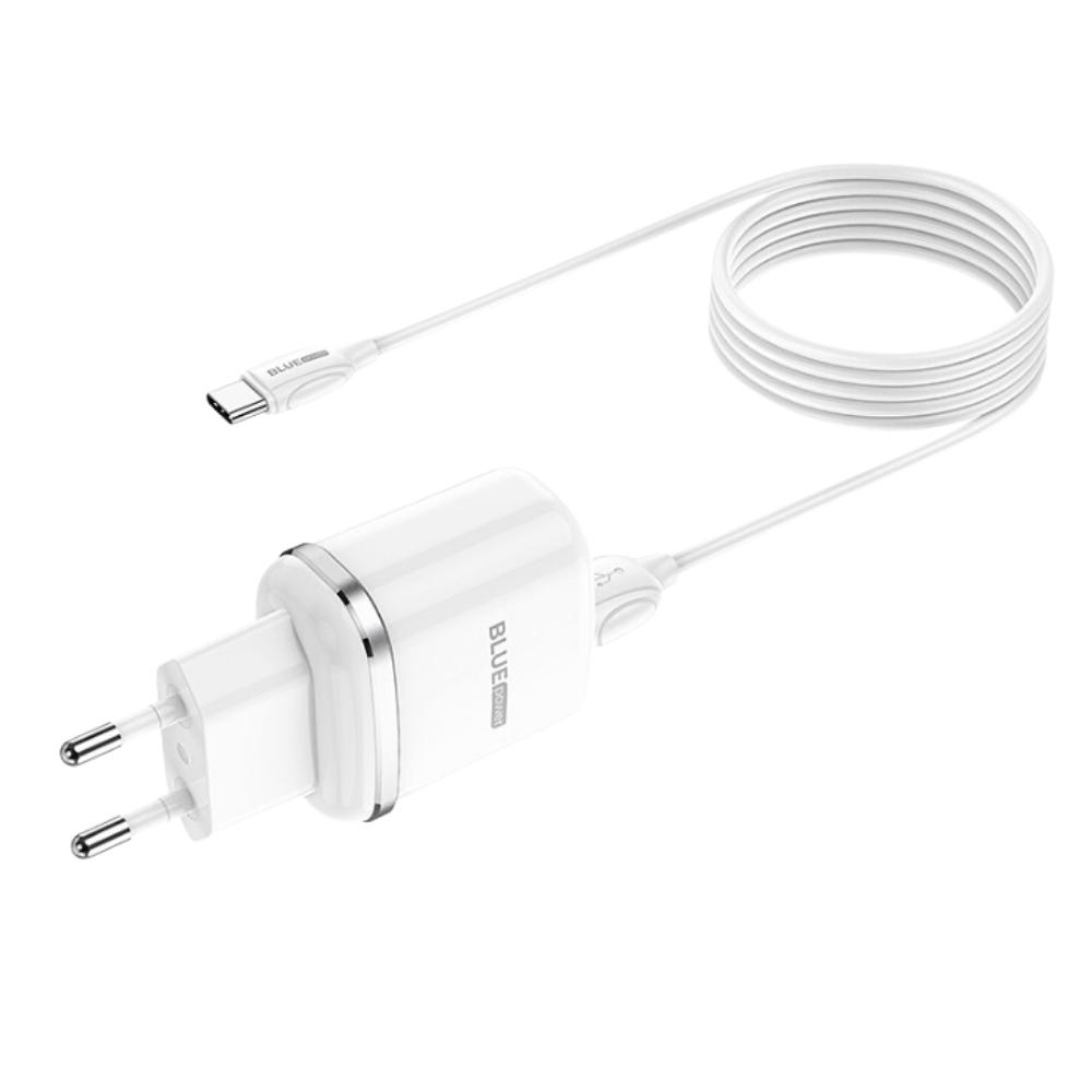 Зарядно устройство комплект BLUE Power BLBA25A 220V с 2 USB изхода 2.4A, с кабел 1м Type C