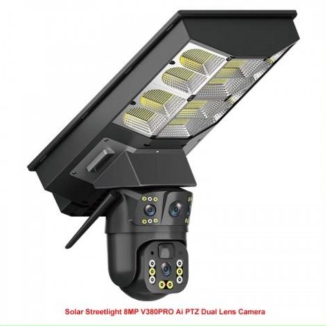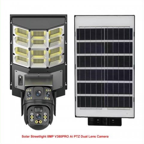 Соларна улична лампа + Двойна камера 8MP.С ДВЕ АНТЕНИ цветно нощно виждане ULTRA HD / модел V380Pro 9S / 4G