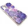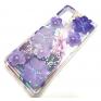 Луксозен гръб 3D Water Case за Apple iPhone 12 /12 Pro 6.1'' - течен гръб с брокат / прозрачен с лилави цветя