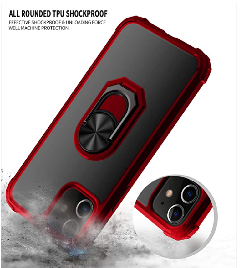 Удароустойчив гръб със стойка и магнитно захващане за Apple iPhone 12 / 12 Pro 6.1'' – прозрачен / червен кант