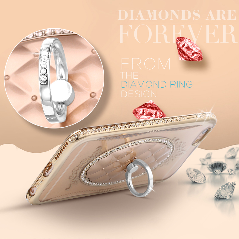 Луксозен силиконов калъф / гръб / със стойка TPU 3D SHENGO за Apple iPhone 7 - ромбове / златист кант