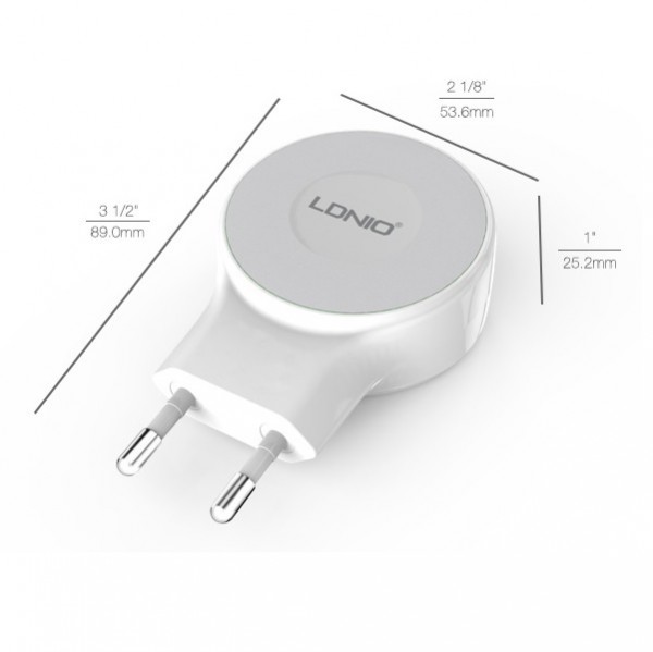 Оригинално зарядно устройство LDNIO A2269 220V с два USB порта 5V / 2.1A за Apple iPhone 5 / iPhone 5S / iPhone SE / iPhone 6 / iPhone 6 Plus / iPhone 7 - бяло