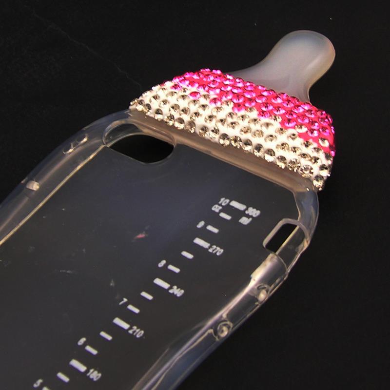 Луксозен силиконов калъф / гръб / TPU с камъни за Apple iPhone 7 - прозрачен биберон / бели и розови камъни