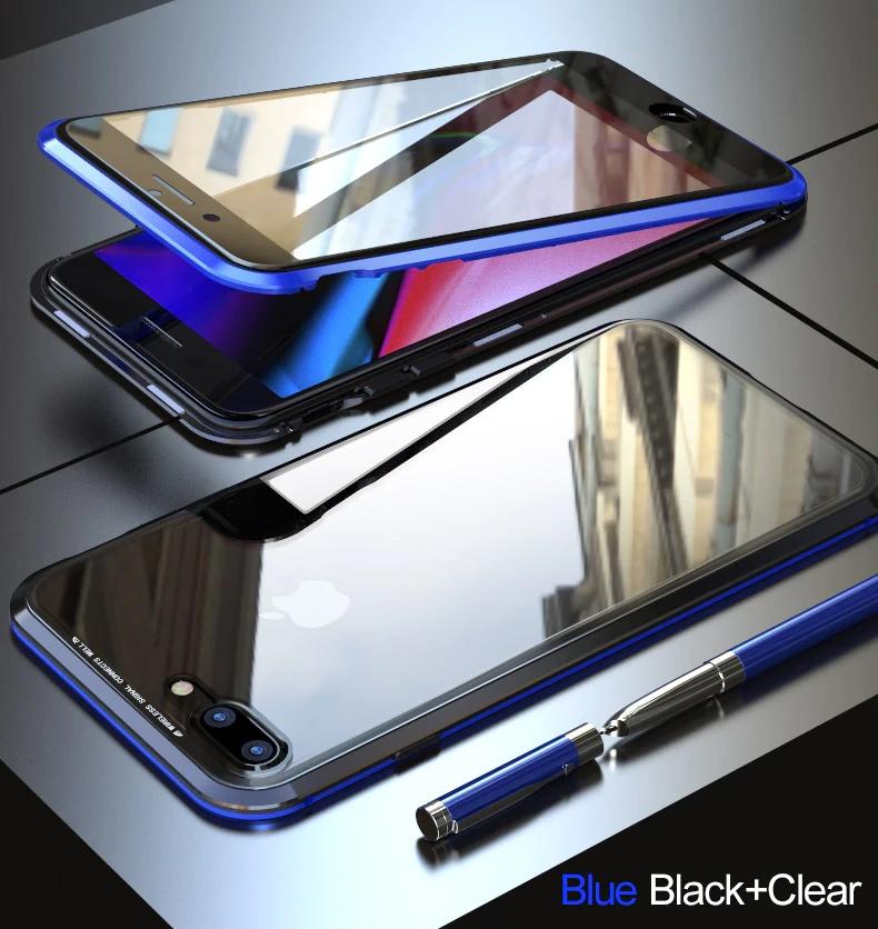 Магнитен калъф Bumper Case 360° FULL за Apple iPhone 7 / iPhone 8 - прозрачен / синя рамка