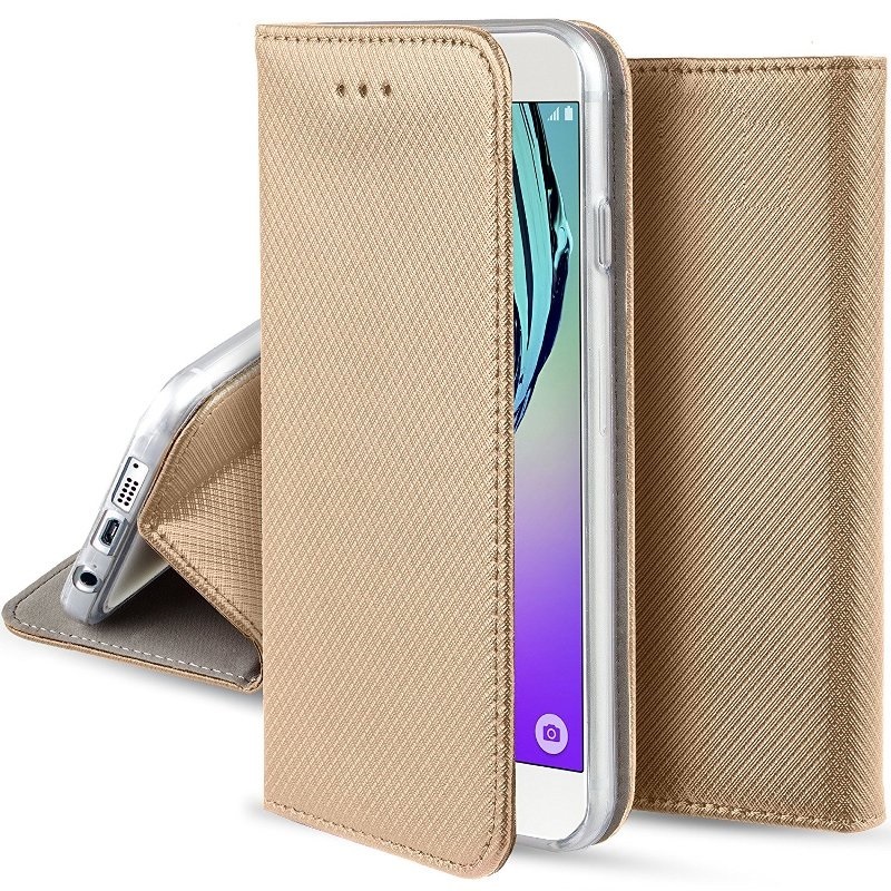 Кожен калъф Magnet Case със стойка за Apple iPhone 7 / iPhone 8 - златист