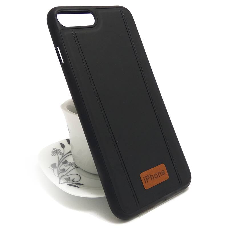 Луксозен силиконов калъф / гръб / TPU за Apple iPhone 7 Plus / iPhone 8 Plus - черен / имитиращ кожа