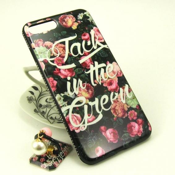 Луксозен твърд гръб със стойка за Apple iPhone 7 Plus / iPhone 8 Plus - черен / цветя / Jack in the Green