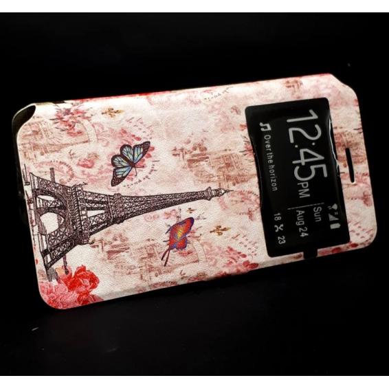 Кожен калъф Flip тефтер S-view със стойка за Huawei P10 Lite - Айфелова кула / пеперуди / Flexi