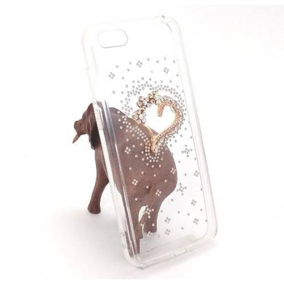 Tвърд гръб и камъни със силиконов кант за Huawei Y5 2018 - прозрачен / сърце
