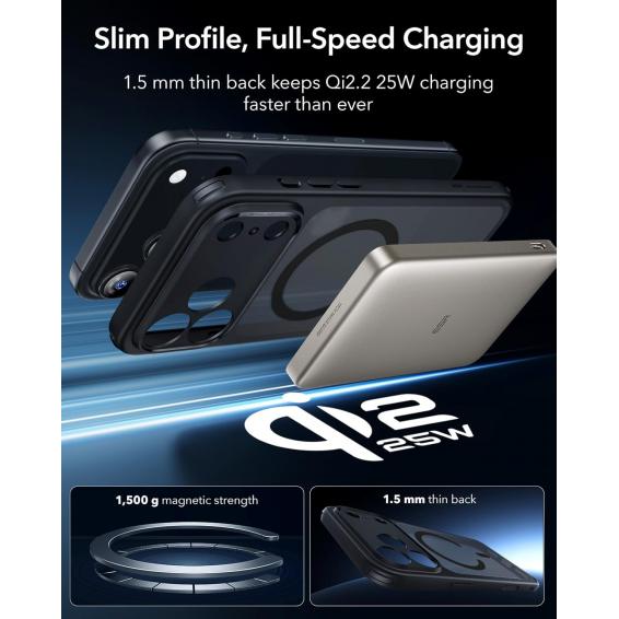 - По-силно магнитно заключване: мощни вградени магнити със сила на задържане от 1500 g позволяват по-бързо и лесно безжично зареждане и осигуряват сигурно заключване на всеки MagSafe аксесоар.